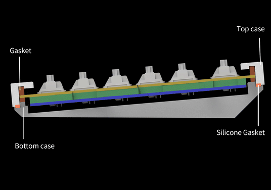 The Double Gasket Design is a new innovative structure in the industry. In addition to the gaskets on the plates, we added silicone pads between the top and bottom cases to significantly reduce the acoustic resonance between the metals and reduce the noise of the impacted metals.