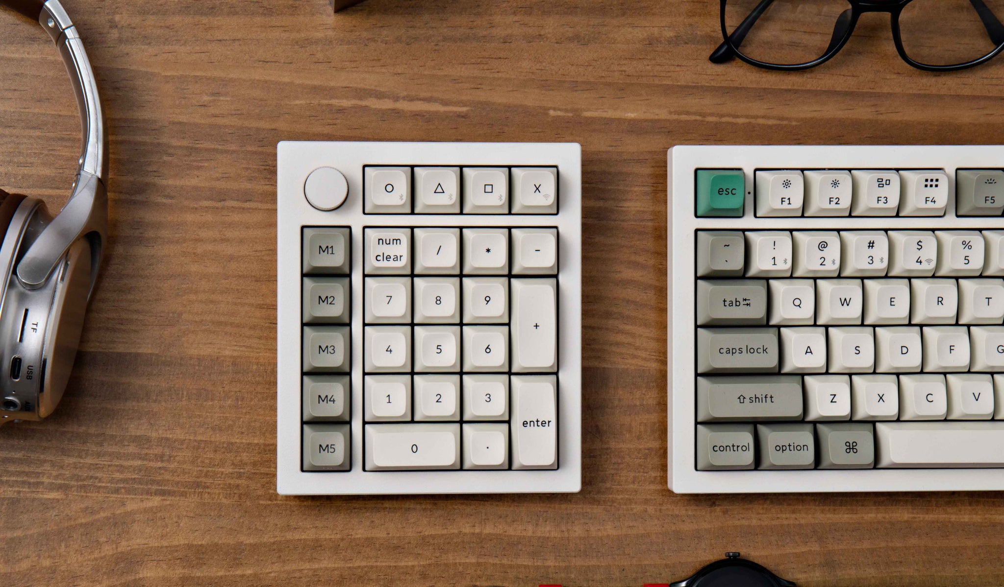 Introducing the Q0 Max, a full-metal custom number pad with a macro column and rotary encoder knob on the left side. Available as a separate numeric keypad or a huge customizable key set with QMK/VIA support, Q0 Max is a cluster of function and appearance, offering superior performance such as 2.4 GHz wireless, Bluetooth 5.1, 1000 Hz polling rare, upgraded acoustic foams, double-gasket design, PBT keycaps, and more to elevate your productivity and typing experience.