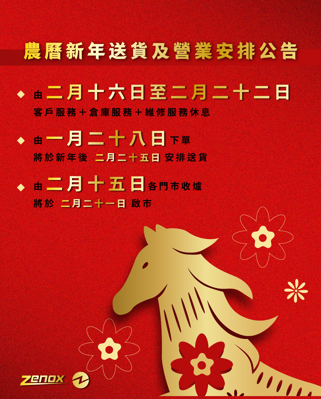 2月16日至2月22日期間,客服、倉庫服務及維修服務將暫停營業。